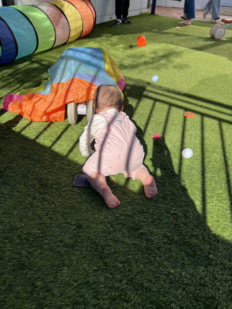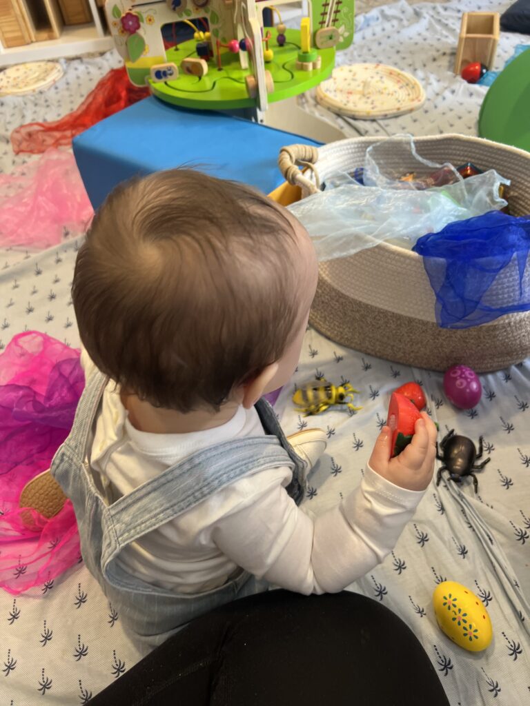 When we started, my daughter was seven months old so we joined the baby group. All of the babies would lay in the middle of the floor, on top of a play mat, with the moms sitting around. Even with her being just seven months old, I noticed she would often imitate other babies, helping her development and socialization!